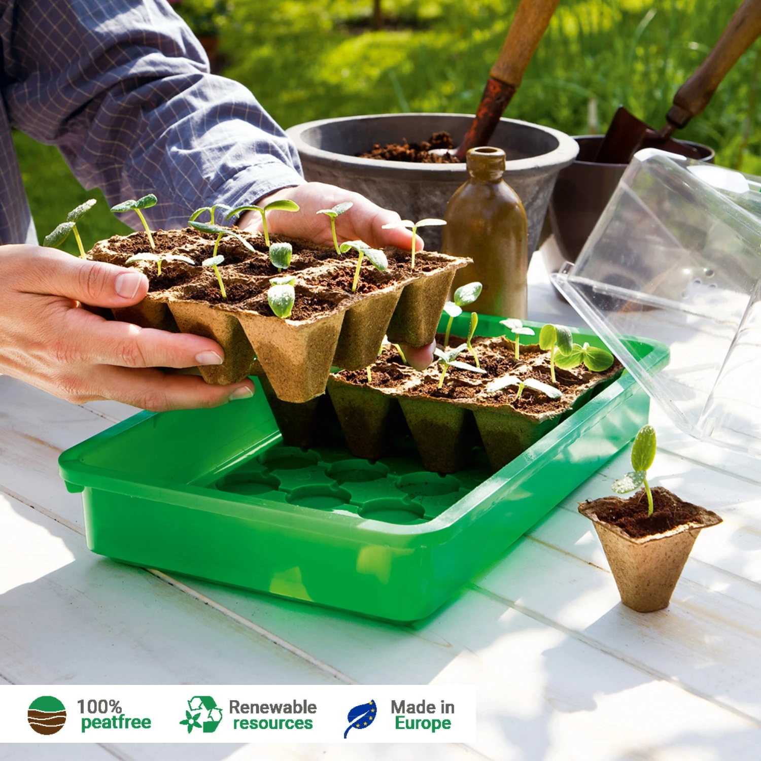 - Jungpflanzen können mit Anzuchttopf ausgepflanzt werden – daher kein Umpflanzschock