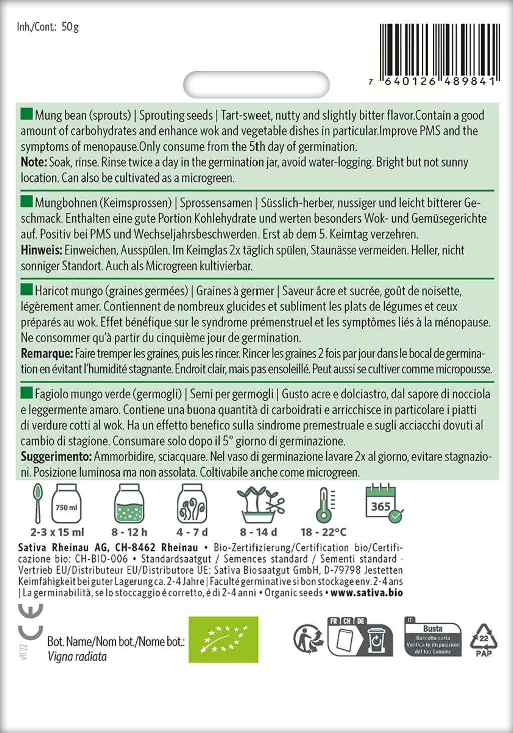 | Botanische Bezeichnung: | Vigna radiata |