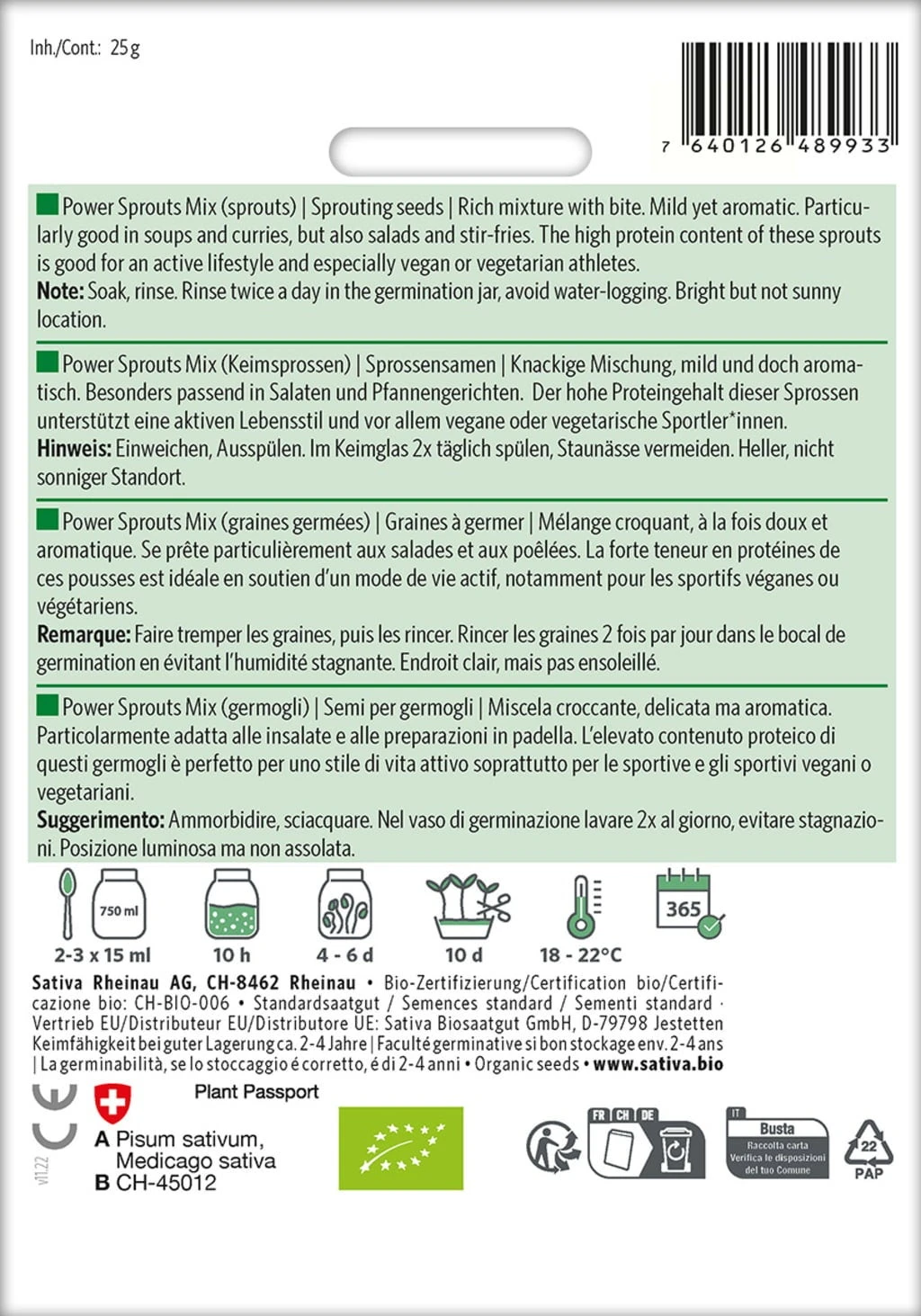 Die knackige Mischung „Power Sprouts Mix“ enthält milde und aromatische Sprossensamen, die deinen Gerichten das gewisse Etwas verleihen. Besonders gut passen sie zu Salaten und Pfannengerichten.