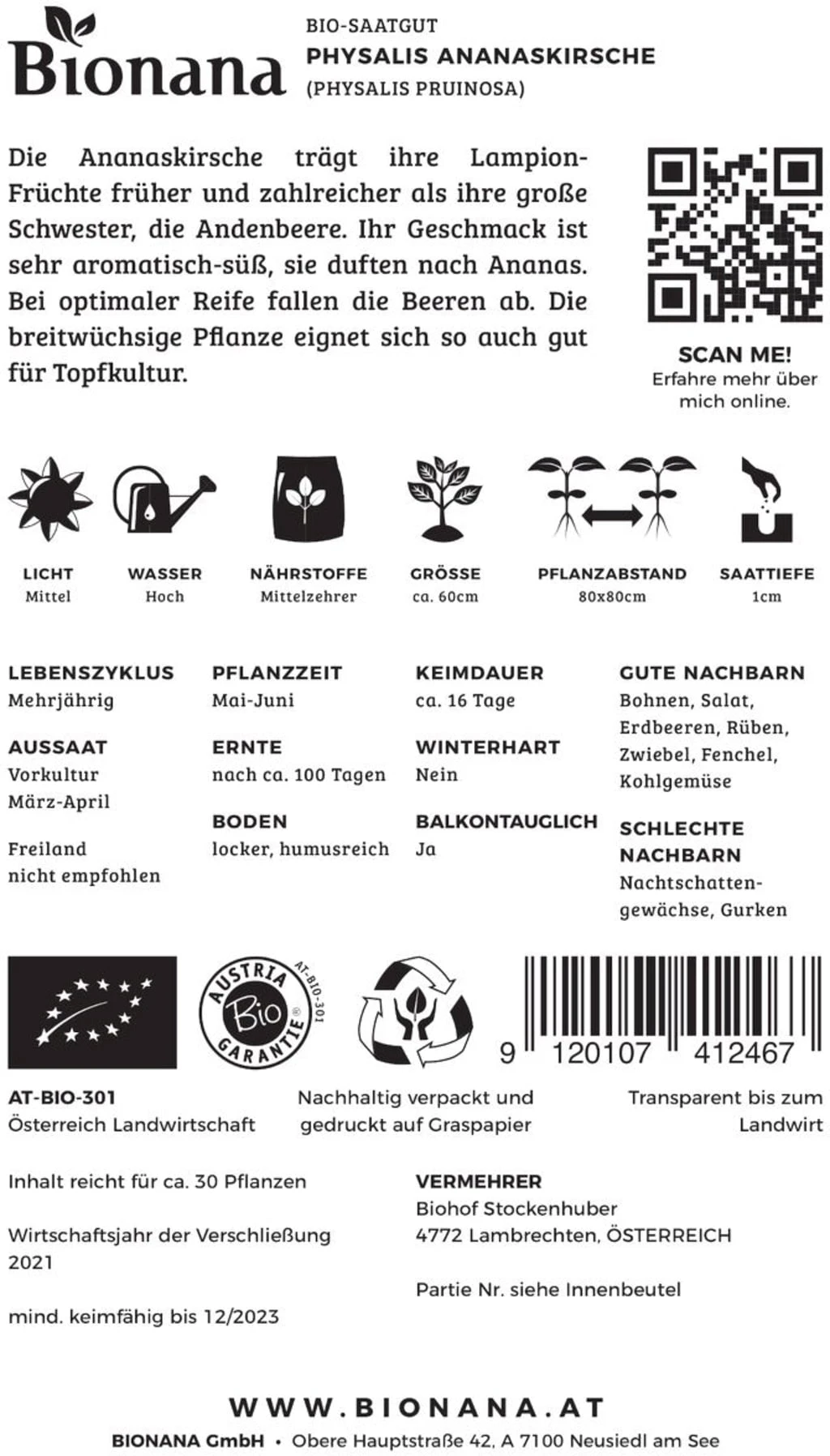 Die Ananaskirsche ist mit der Andenbeere verwandt, trägt jedoch früher und mehr Früchte als diese. Die kleinen, orangen Beeren duften herrlich nach Ananas und begeistern mit ihrem mild-aromatischen Geschmack, egal ob frisch genascht oder zu Kompott oder Marmelade verarbeitet.