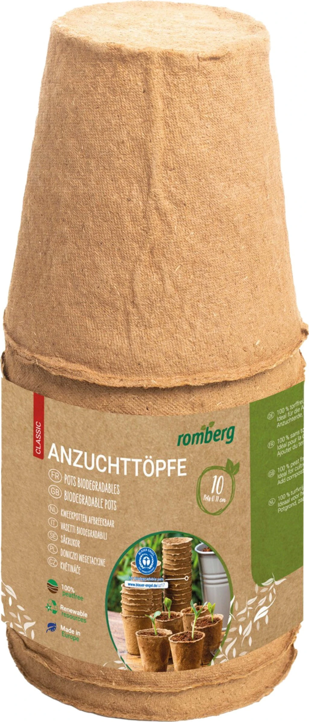 Die Anzuchttöpfe wurden aus einem torffreien Zellulosegemisch hergestellt. Sie ermöglichen eine erfolgreiche Pflanzenanzucht. Die Pflanzen können die Topfwände ungehindert durchwurzeln, so dass später der komplette Topf in Freiland gepflanzt werden kann. Die Töpfe sind gut verwendbar für die Vermehrung durch Samen, für die Anzucht von Stecklingen und zum Pikieren kleiner Sämlinge.