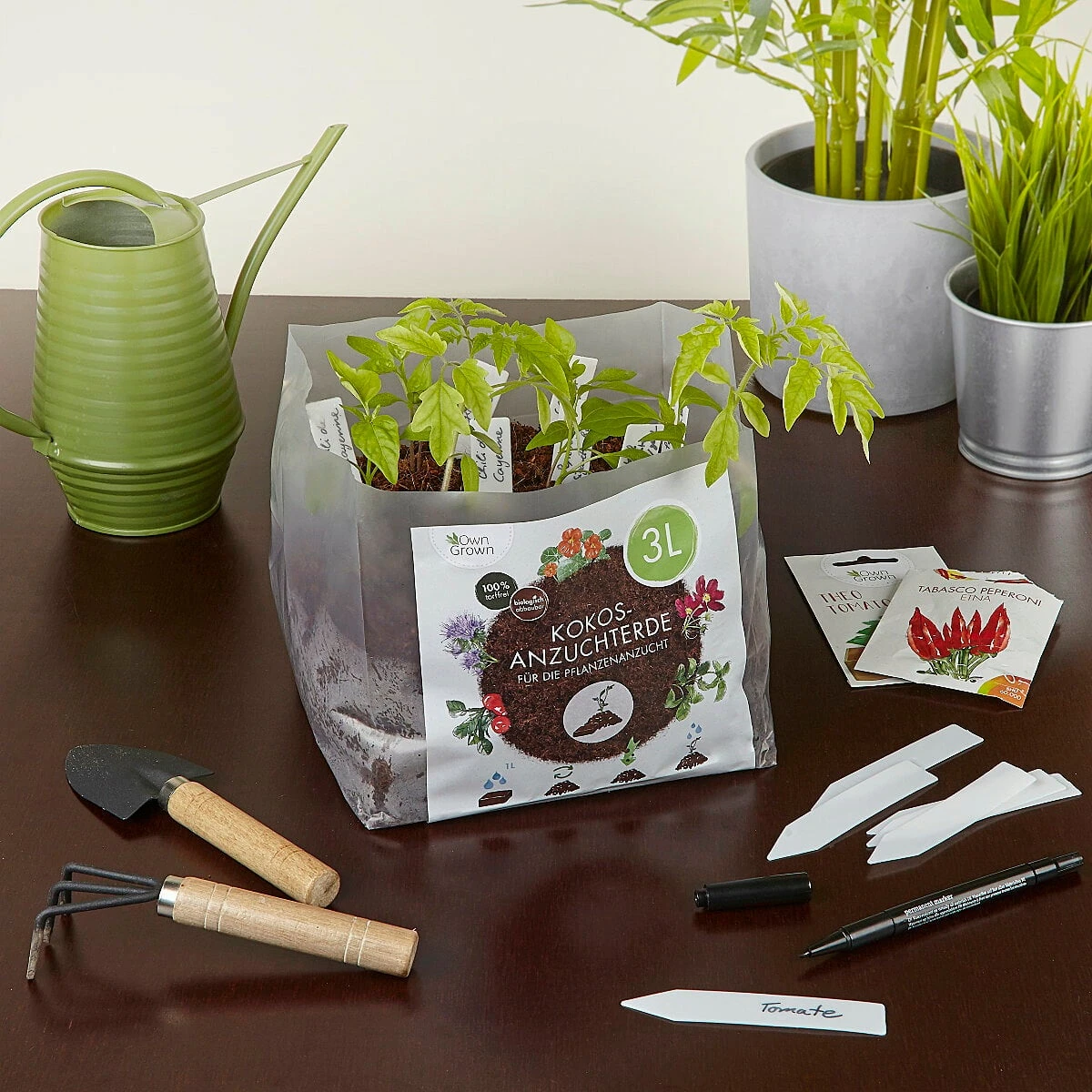 Mit der torffreien Kokoserde holst du dir ein platzsparendes Substrat ins Haus, das sich innerhalb weniger Minuten entfaltet und die perfekte Basis für deine Anzucht bildet. Auch zum Einpflanzen von Kräutern, Gemüse und Zierpflanzen eignet sich Kokoserde ganz hervorragend. Das Substrat besteht aus natürlichen Kokosfasern und Kokosmark und ist zur Gänze biologisch abbaubar. Für die ersten Wochen des Wachstums sind bereits alle Nährstoffe enthalten, sodass du dir in dieser Zeit die Düngergabe ersparst. Eine leichtgewichtige und torffreie Alternative zu herkömmlicher Erde.