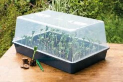 Das Minigewächshaus Solid kommt im Set mit einer stabilen Anzuchtschale, einem transparenten Deckel sowie drei praktischen Mini-Topfplatten. Es eignet sich hervorragend für die Anzucht und lässt Samen zu stattlichen Pflanzen heranwachsen. Die Mini-Topfplatten erleichtern die Aussaat immens und besitzen je ein Loch an der Unterseite, damit überschüssiges Wasser rasch abfließen kann. Die Verwendung mit Deckel schafft zudem ein optimales Mikroklima, sodass es deinen Pflanzen an nichts fehlt.