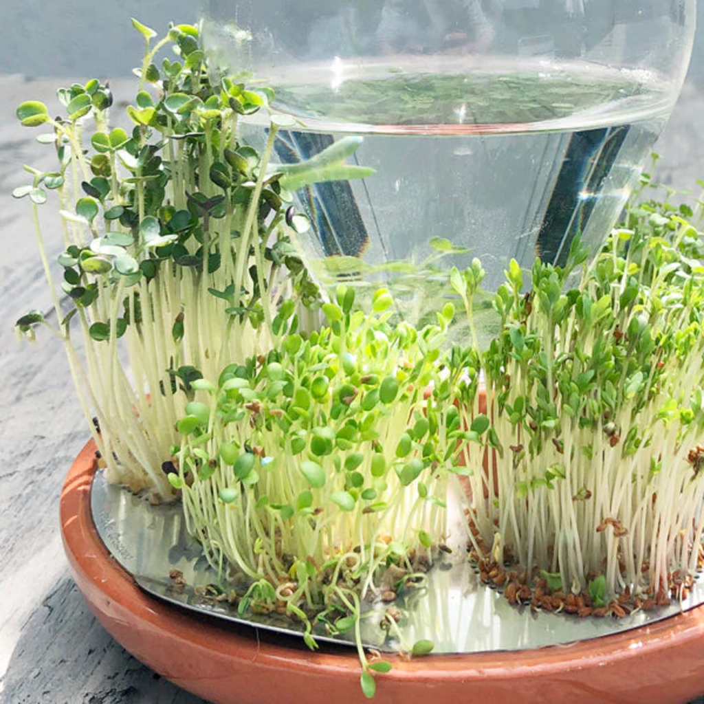 Hier wartet der siebente Keimsprossen-Himmel auf dich! Dieses Set enthält sechs verschiedene Keimsprossensorten und bietet dir so eine unwiderstehliche Geschmacksvielfalt. Säe die köstlichen kleinen Pflänzchen rund ums Jahr und freue dich über jederzeit frisches Grün auf deinem Teller.